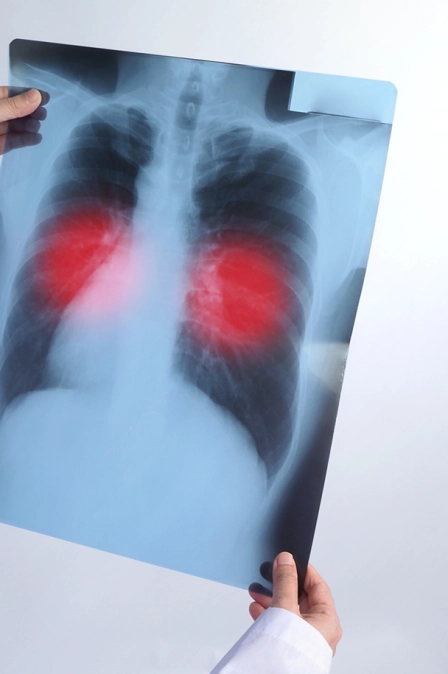 3. При наличии симптомов делают рентген грудной клетки или КТ органов грудной полости. Выявляется инфильтрат на снимке.